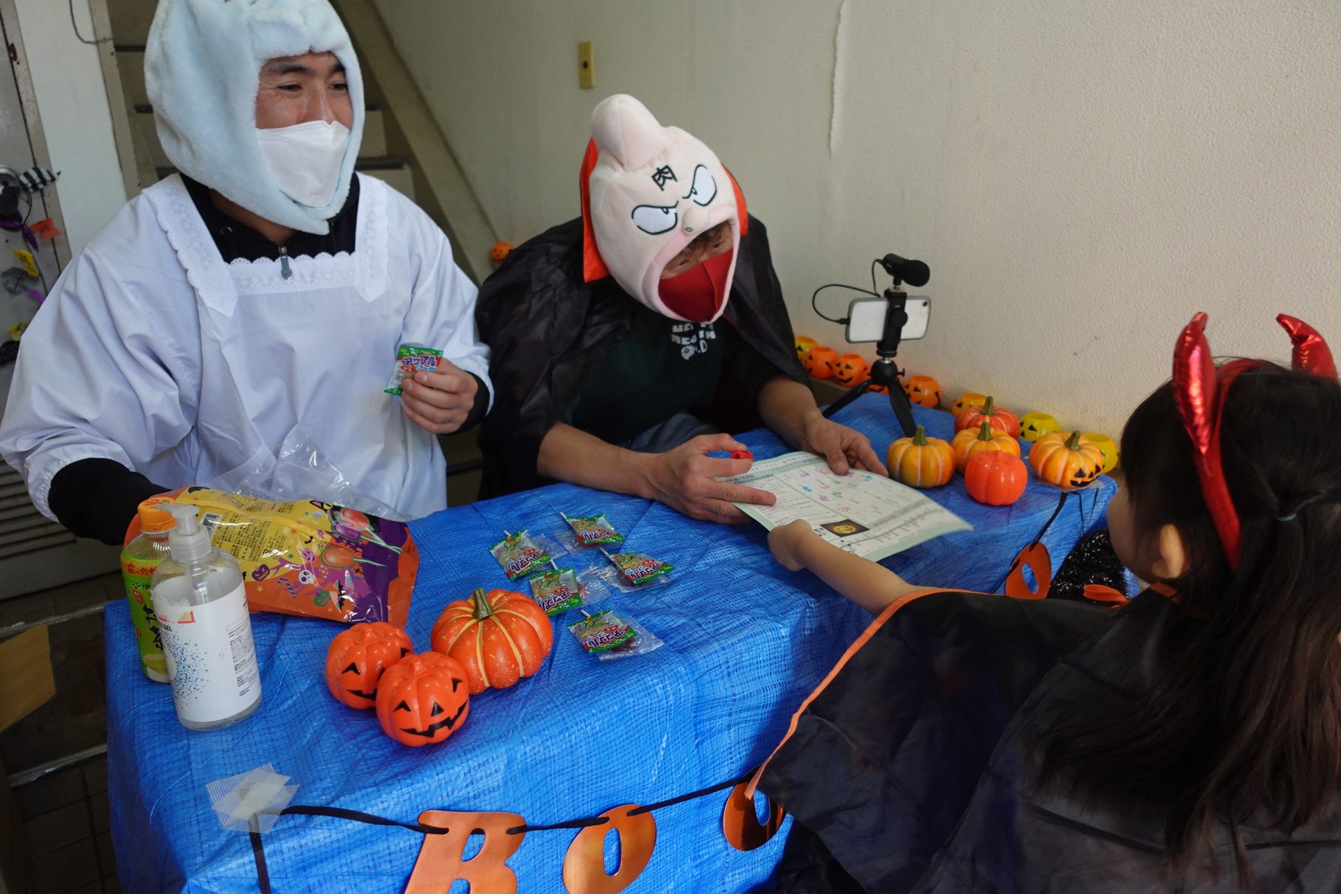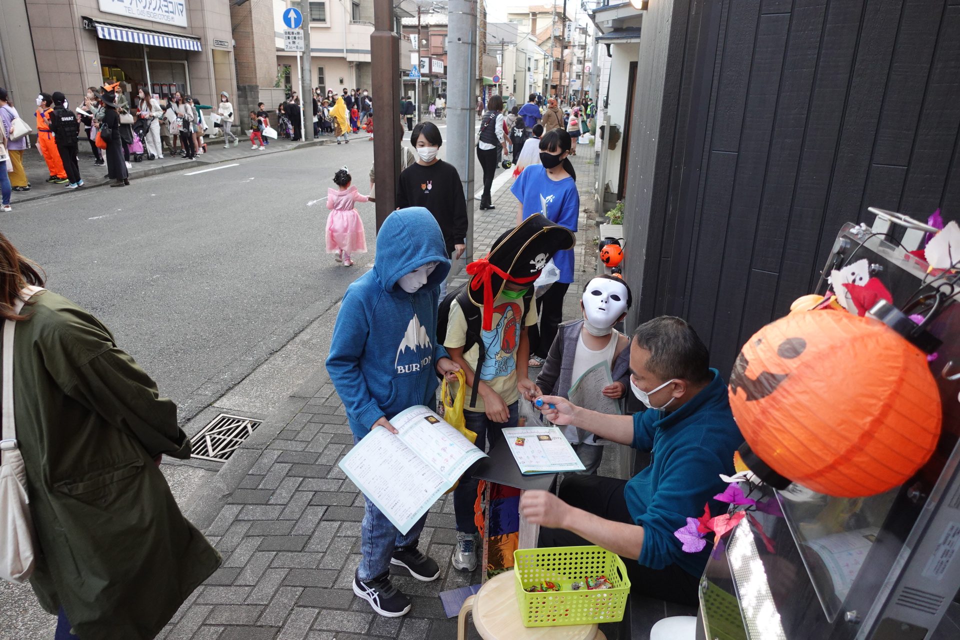 企画には、同商店街の18店舗が協力し、店頭や店内で訪れた子どもたちにお菓子を配った。