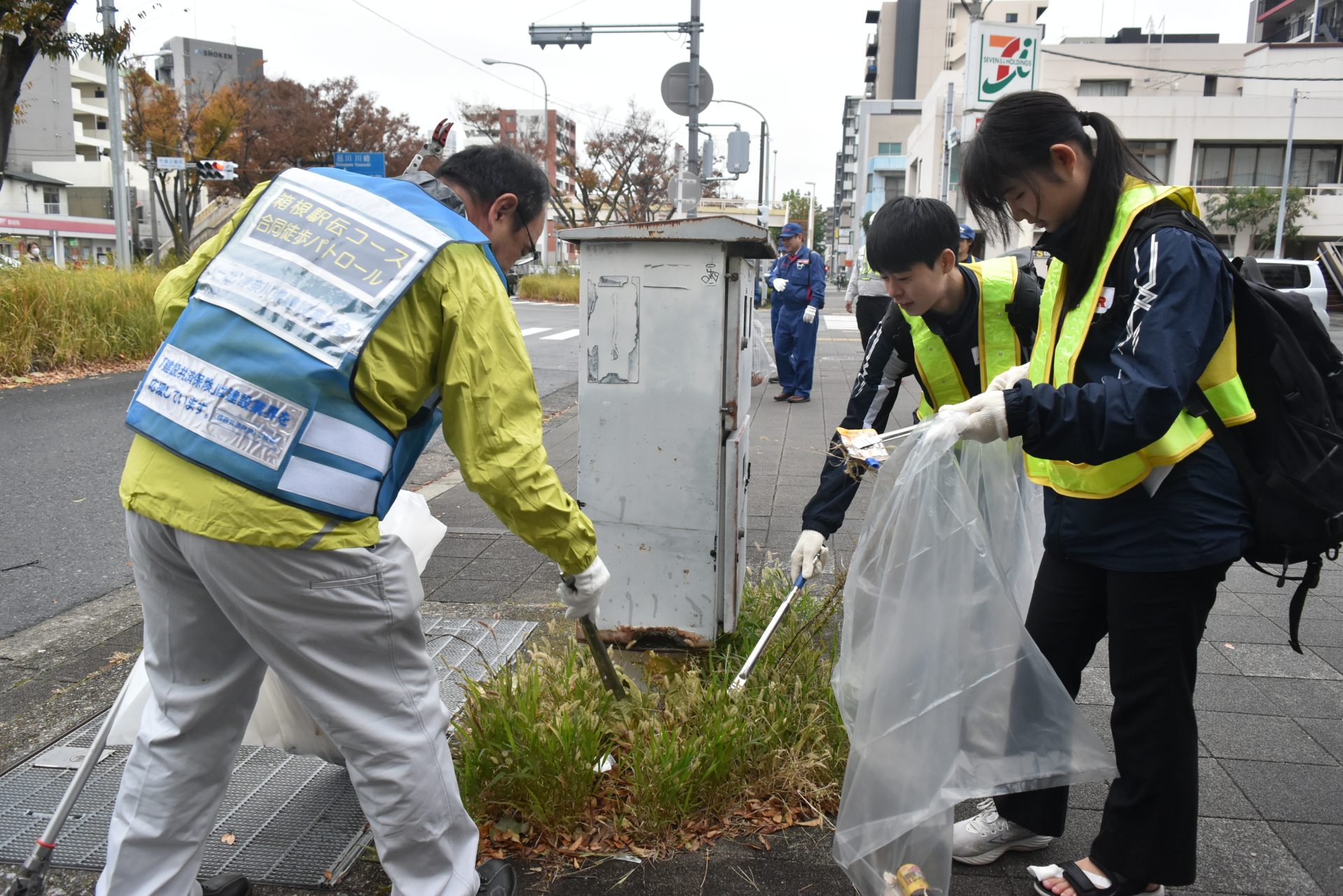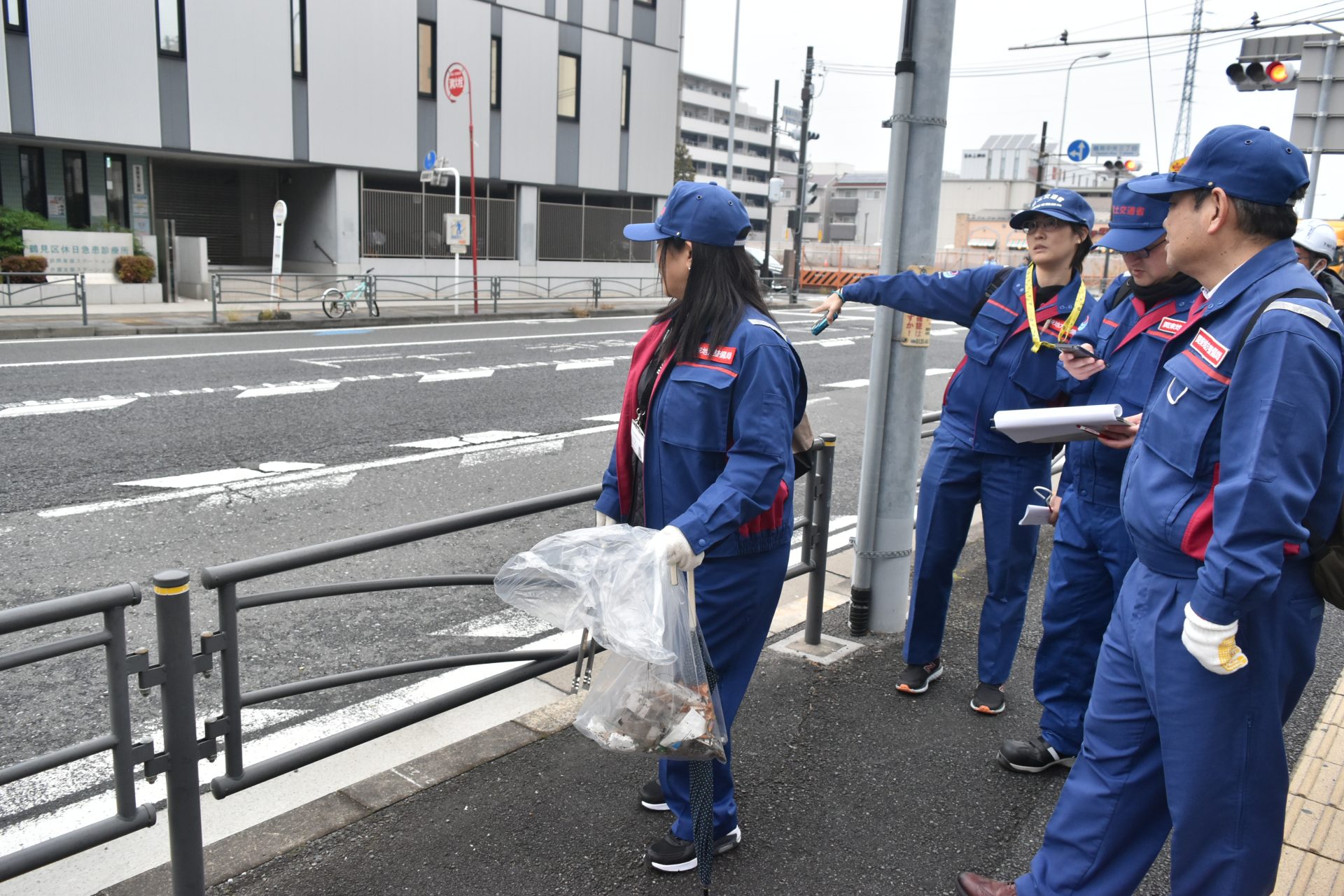新年に開催を控える第102回東京箱根間往復大学駅伝競走「箱根駅伝」を前に、国土交通省関東地方整備局横浜国道事務所は11月25日、(一社)関東学生陸上競技連盟(関東学連)、(一社)神奈川県建設業協会と合同で、区内市場富士見町に設置される鶴見中継所周辺のコースの安全点検と清掃活動を行う徒歩パトロールを実施した。