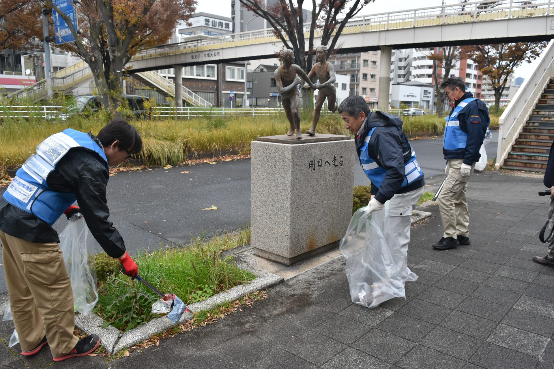 往路にある箱根駅伝像周辺もゴミ拾い