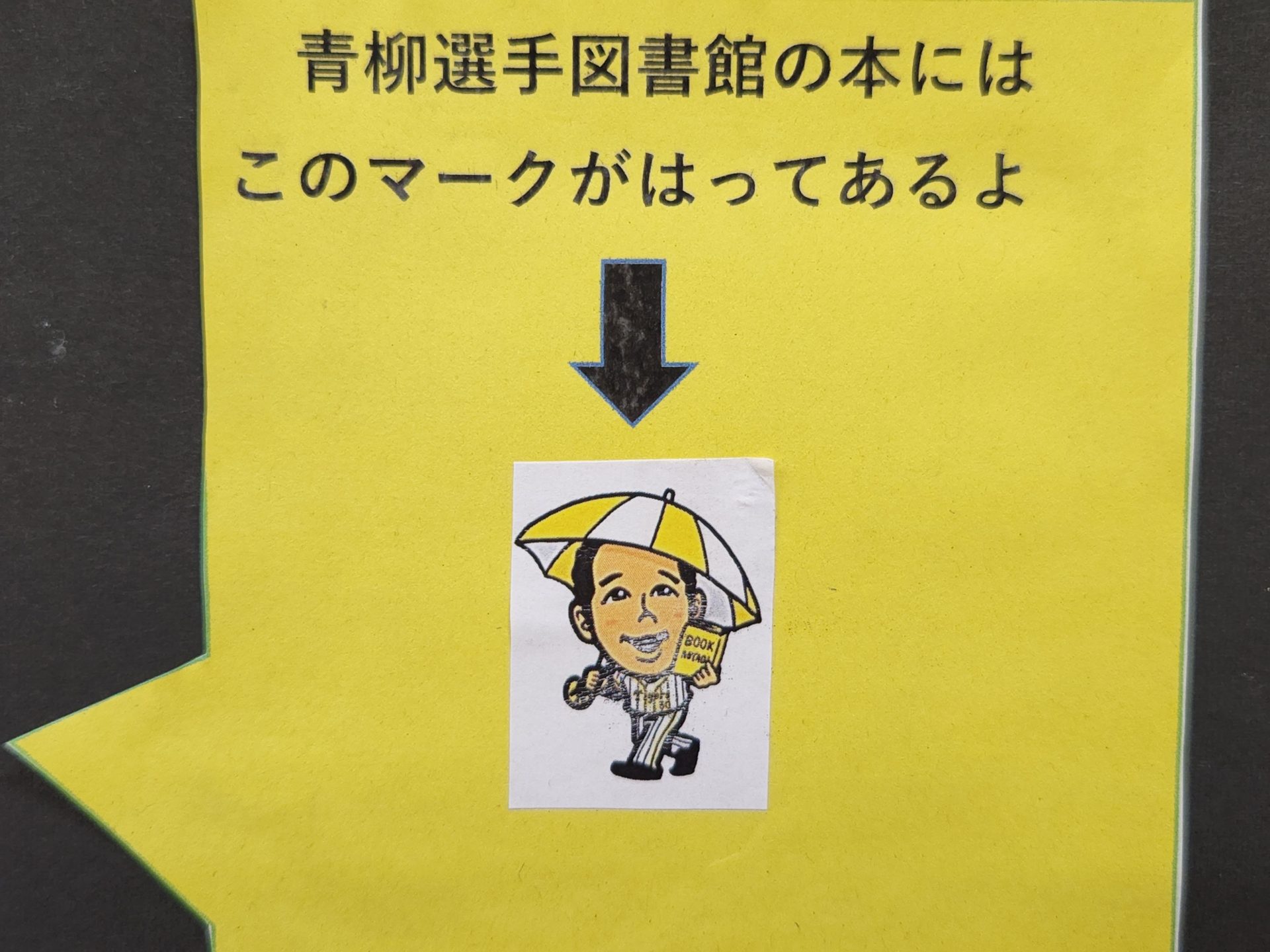 上寺尾小学校でも、学校内で要望を聞き、寄贈された図書カードで本を購入。図書には青柳選手の社会貢献活動マークを貼り、コーナーに配置している。