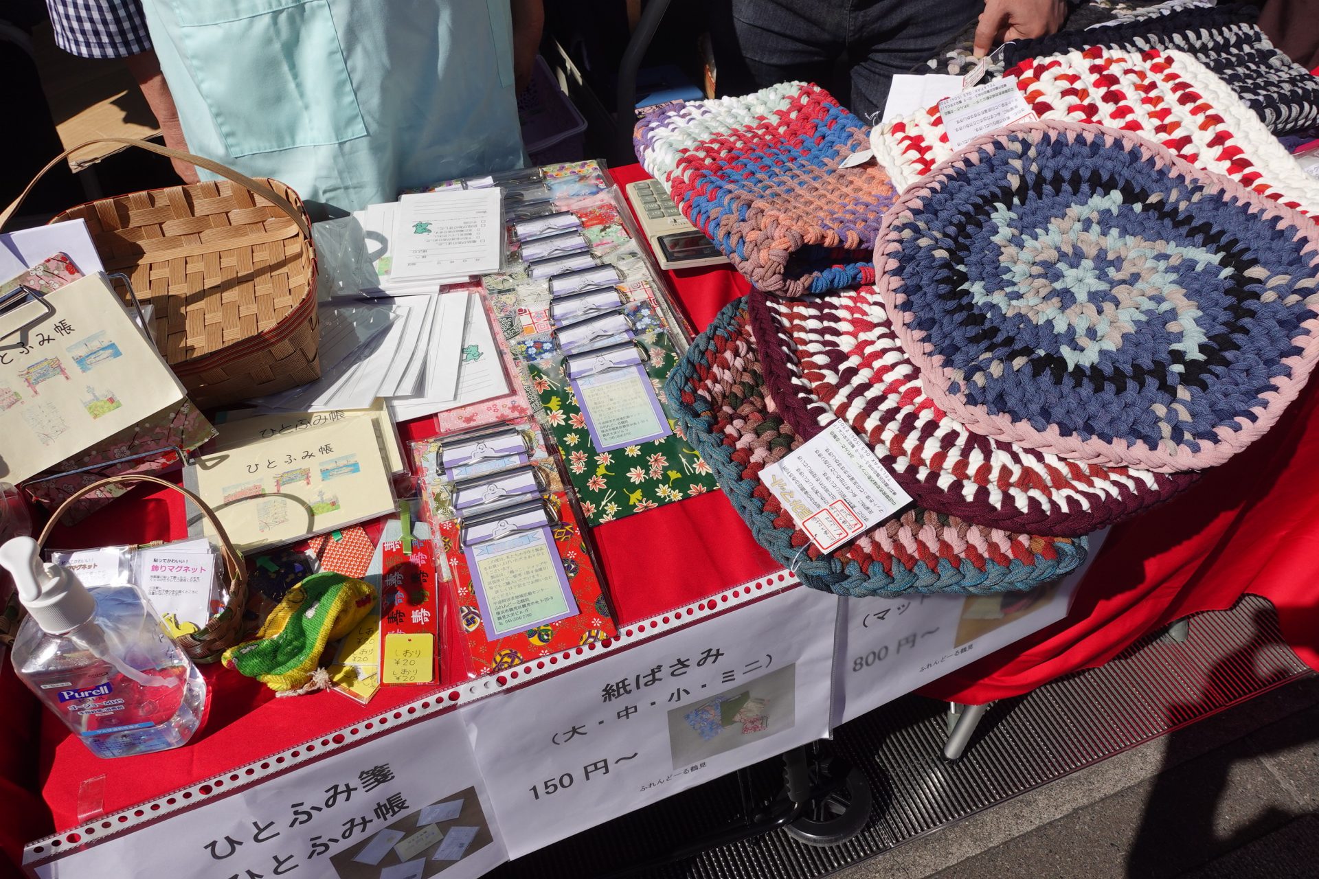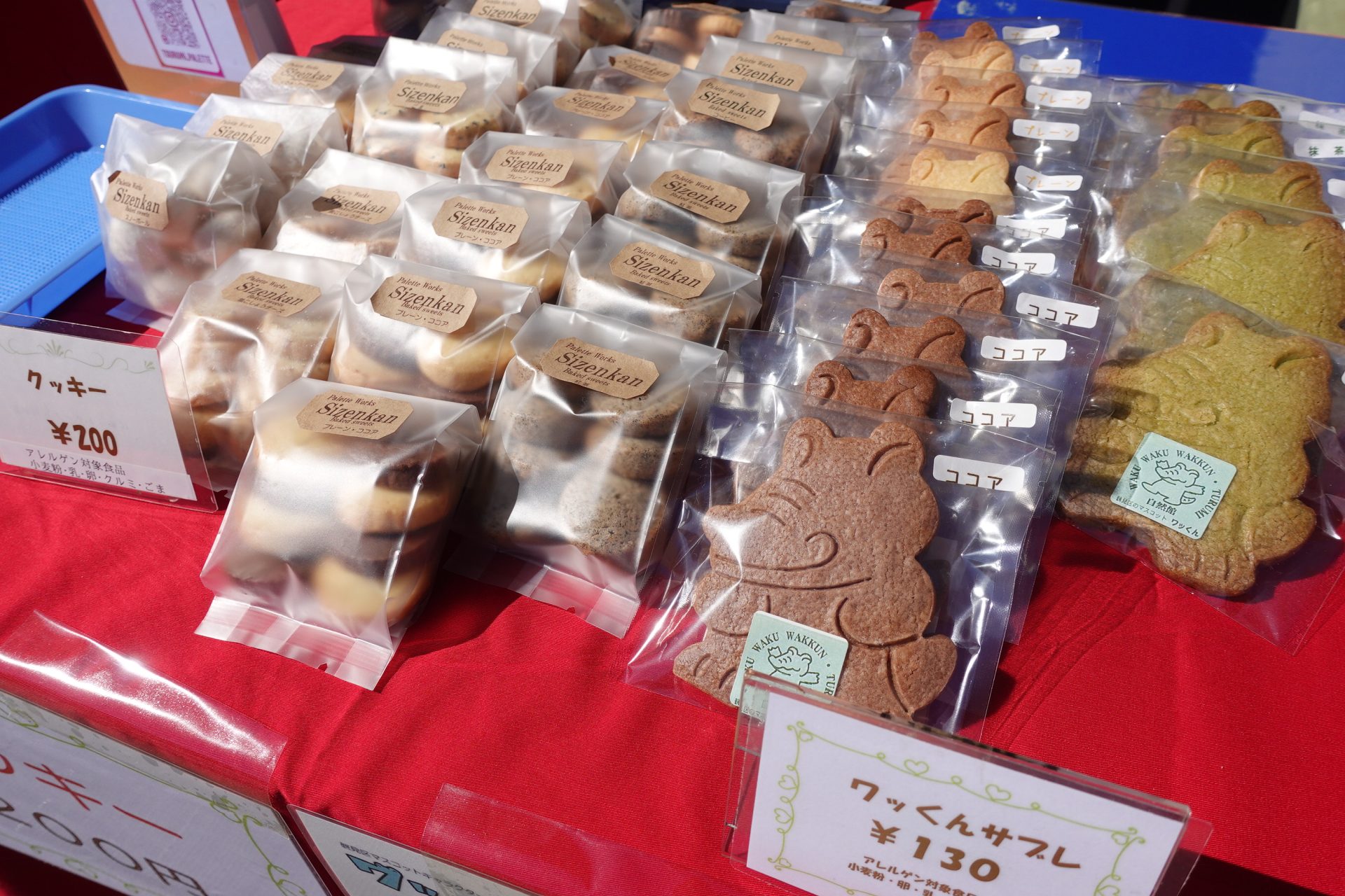 今回は計17事業所が出店。クッキーやパンといった食品から、布製のバッグや小物入れ、アクセサリーや花など、各施設の障害児者が作った製品が並んでいる。