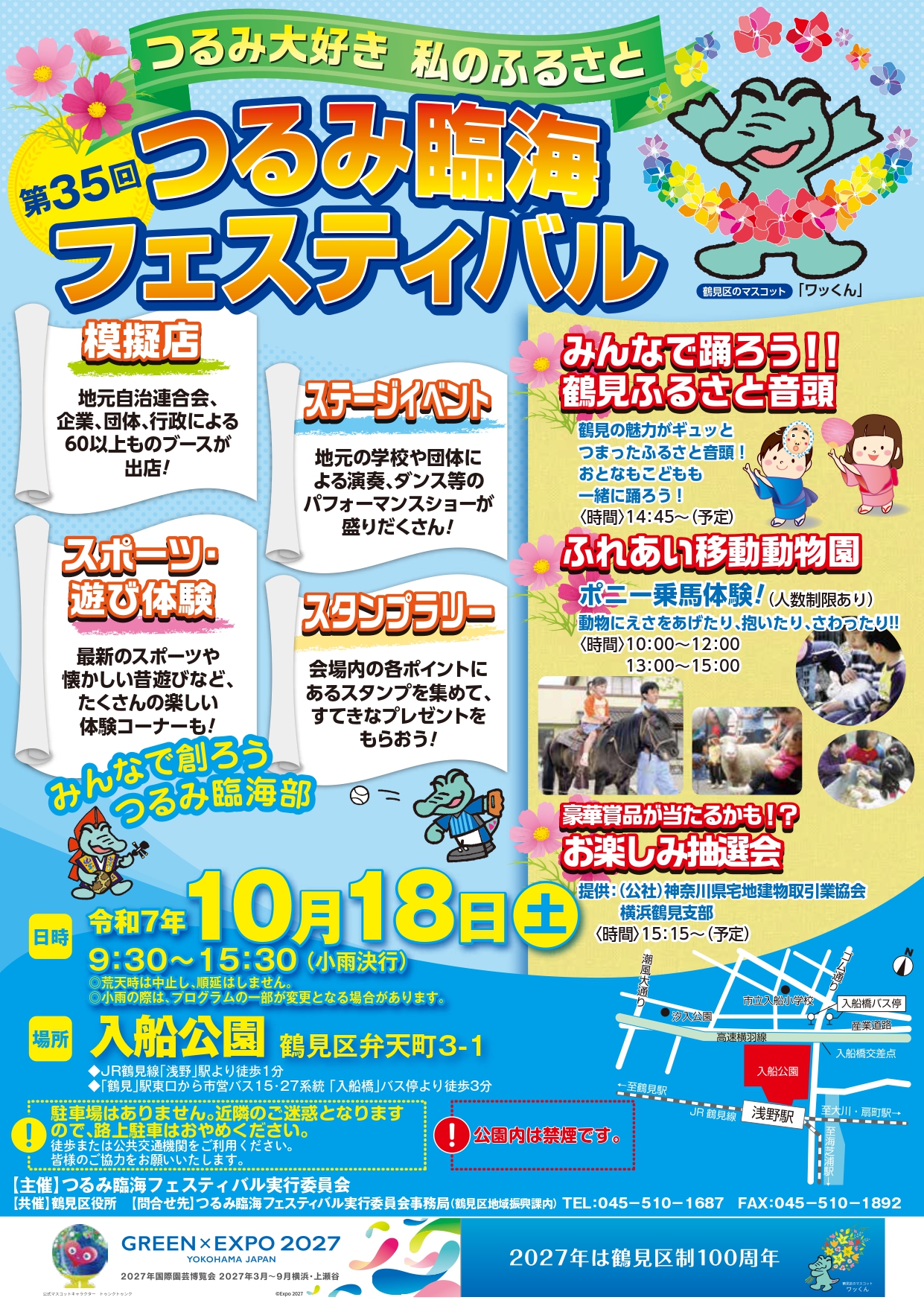 鶴見区民祭りの一つ、「第35回つるみ臨海フェスティバル」(通称=臨海フェス)が、10月18日㈯9時30分~15時30分まで、入船公園=鶴見区弁天町3-1=で開催される。