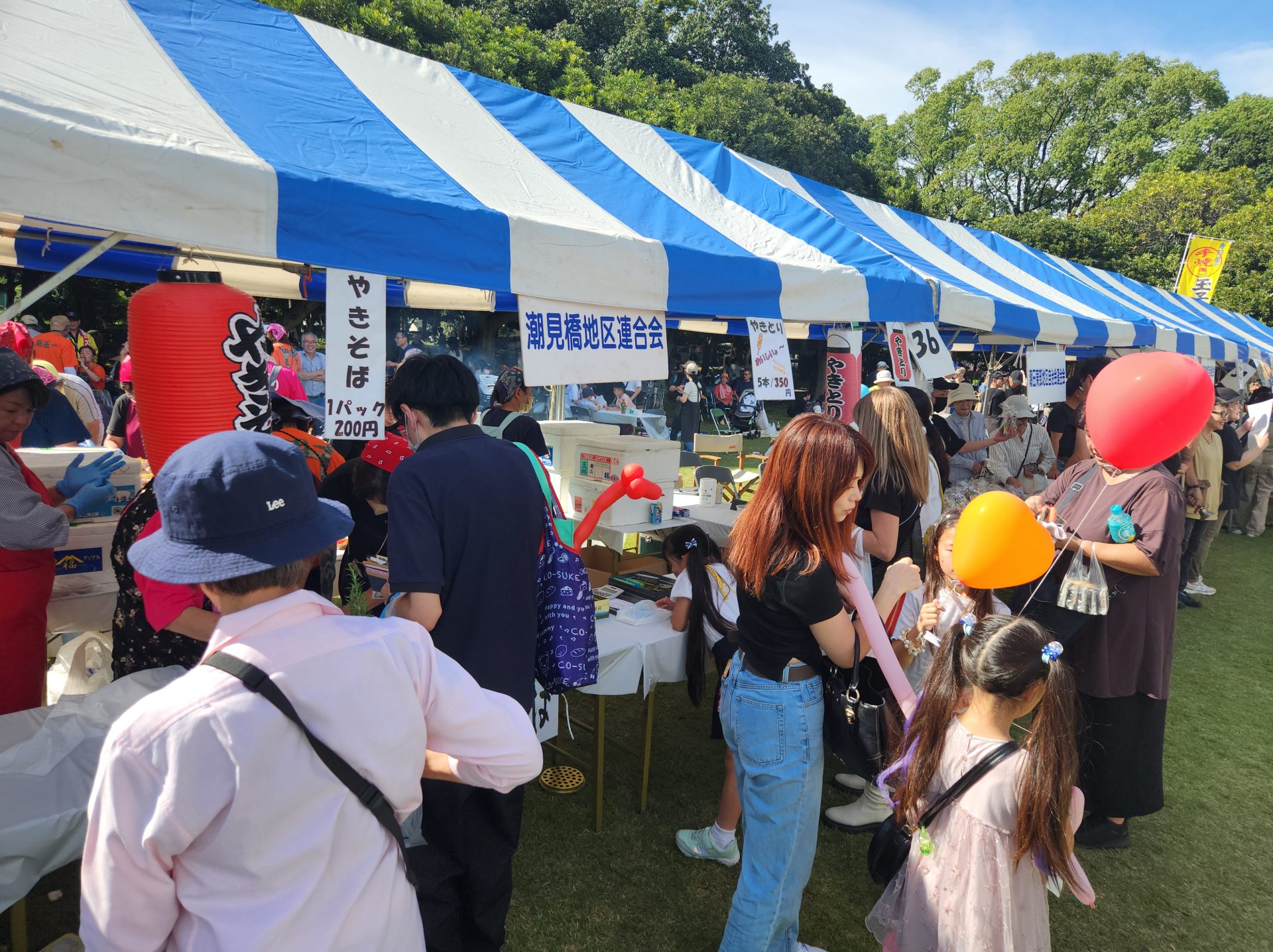 今年も入船公園を会場に、広い芝生の自由広場に模擬店が並ぶ「にぎやか広場」とステージを設置。