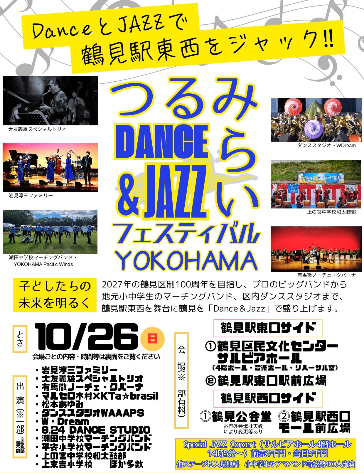 10月26日㈰鶴見が音楽とダンスの1日に 初の音楽フェス「つるみらいDance&JAZZフェスティバル横濱」 計約30組・総勢400人が出演