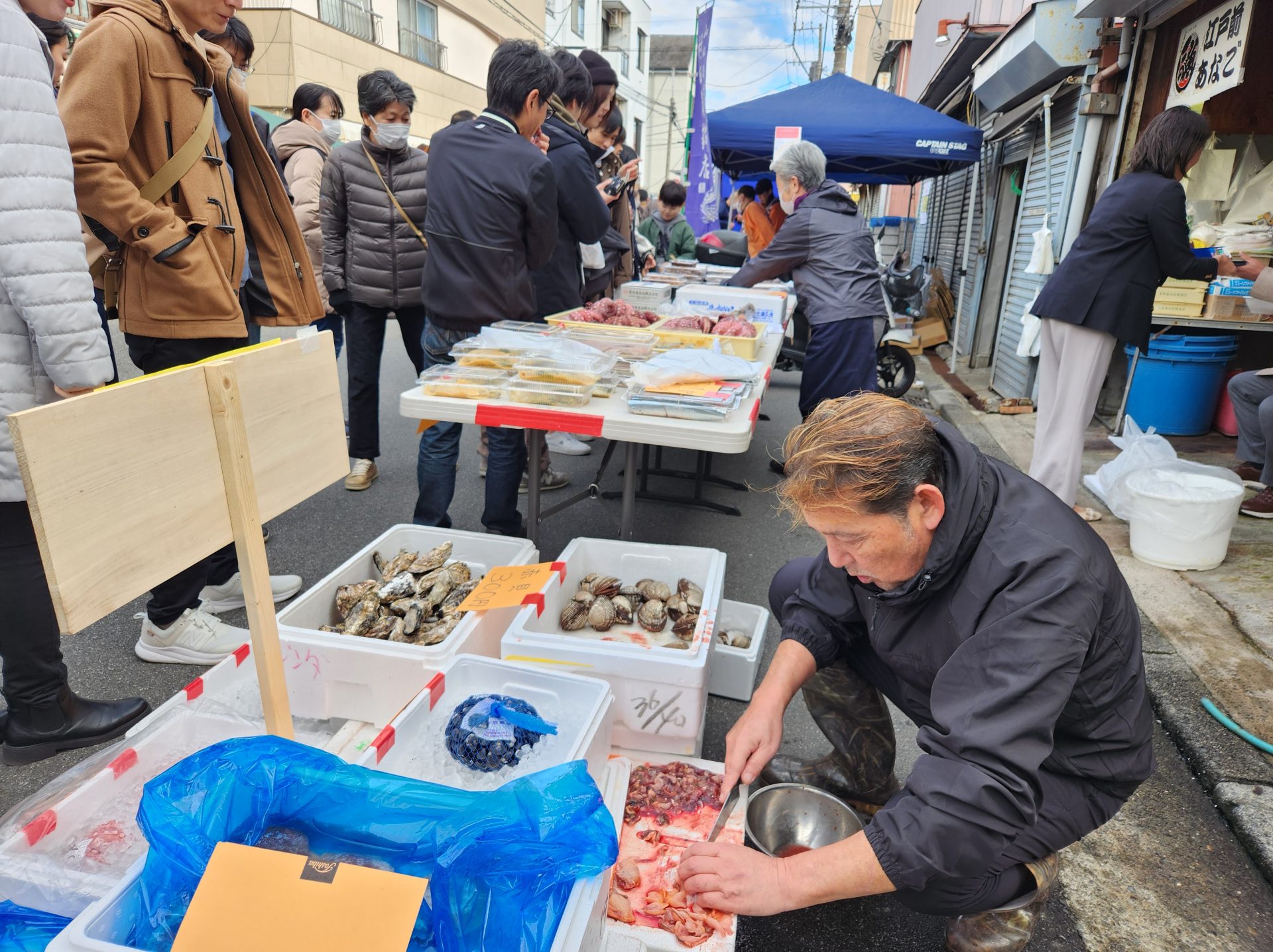生麦魚河岸は、かつて江戸城に魚介類を納めることで特別権益を受けていた御菜八ケ浦に数えられた由緒ある魚河岸の一つ。イベントでは、生麦魚介商組合の加盟店による新鮮魚介類が市場価格で販売される。