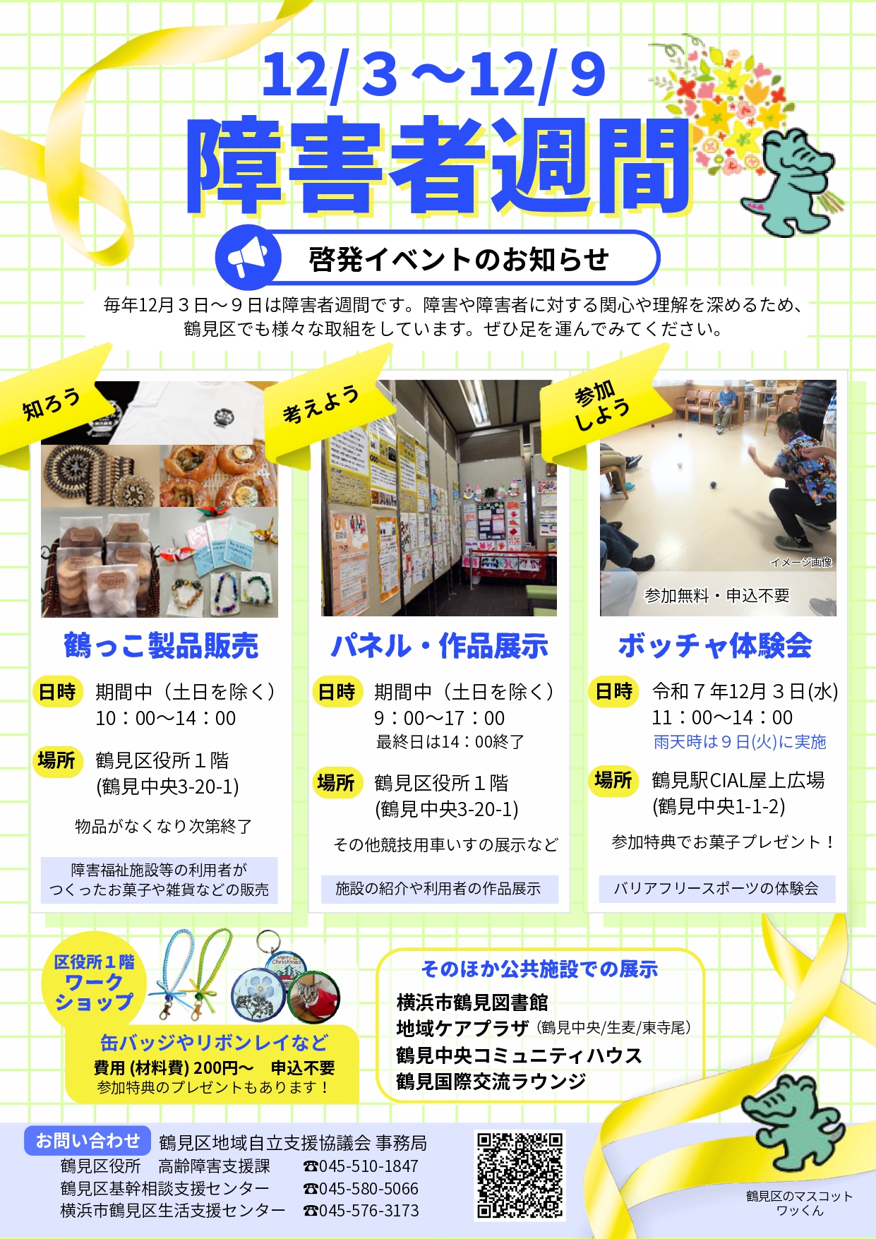 毎年12月3日から9日の1週間と定められている障害者週間。これに合わせ、鶴見区内でも障害者理解の啓発などを目的としたさまざまな企画が行われる。