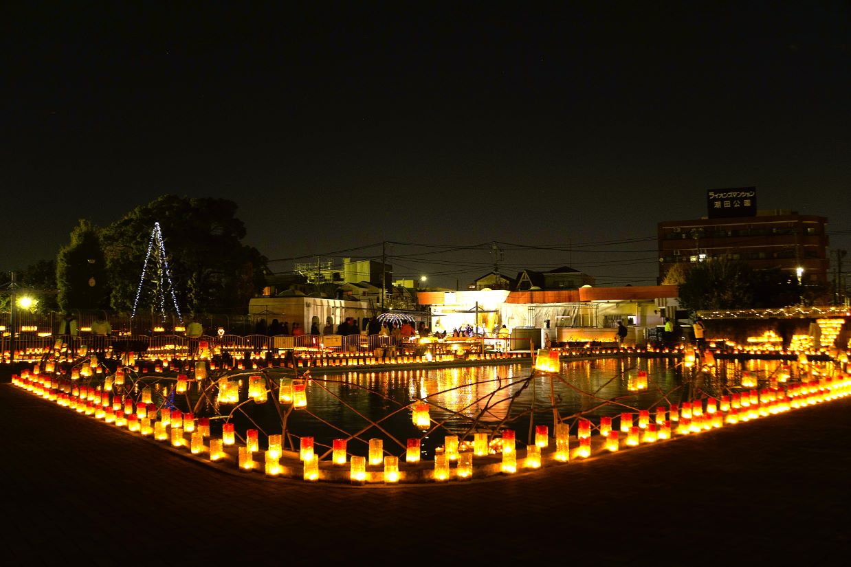 潮田公園プールで13日「クリスマスランタンフェスタ」 水面に映る2千の灯り 幻想的な夜イベント