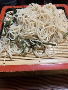注文するには、アナゴ天丼セットです。アナゴ天丼にそばかうどんがついています。確か1000円で、これは大変お得です。食べてみると、これがおいしくて、あっという間に完食でした。実は、その日は少し春めいて、暑さも少し感じていましたから、冷たいそばを注文したのですが、これが大ヒットでした。思わず、ざるそばを追加注文しました。セットのそばは「もり」のようです。感覚的な問題ですが、もりの方が心持、味が強かった気がします。