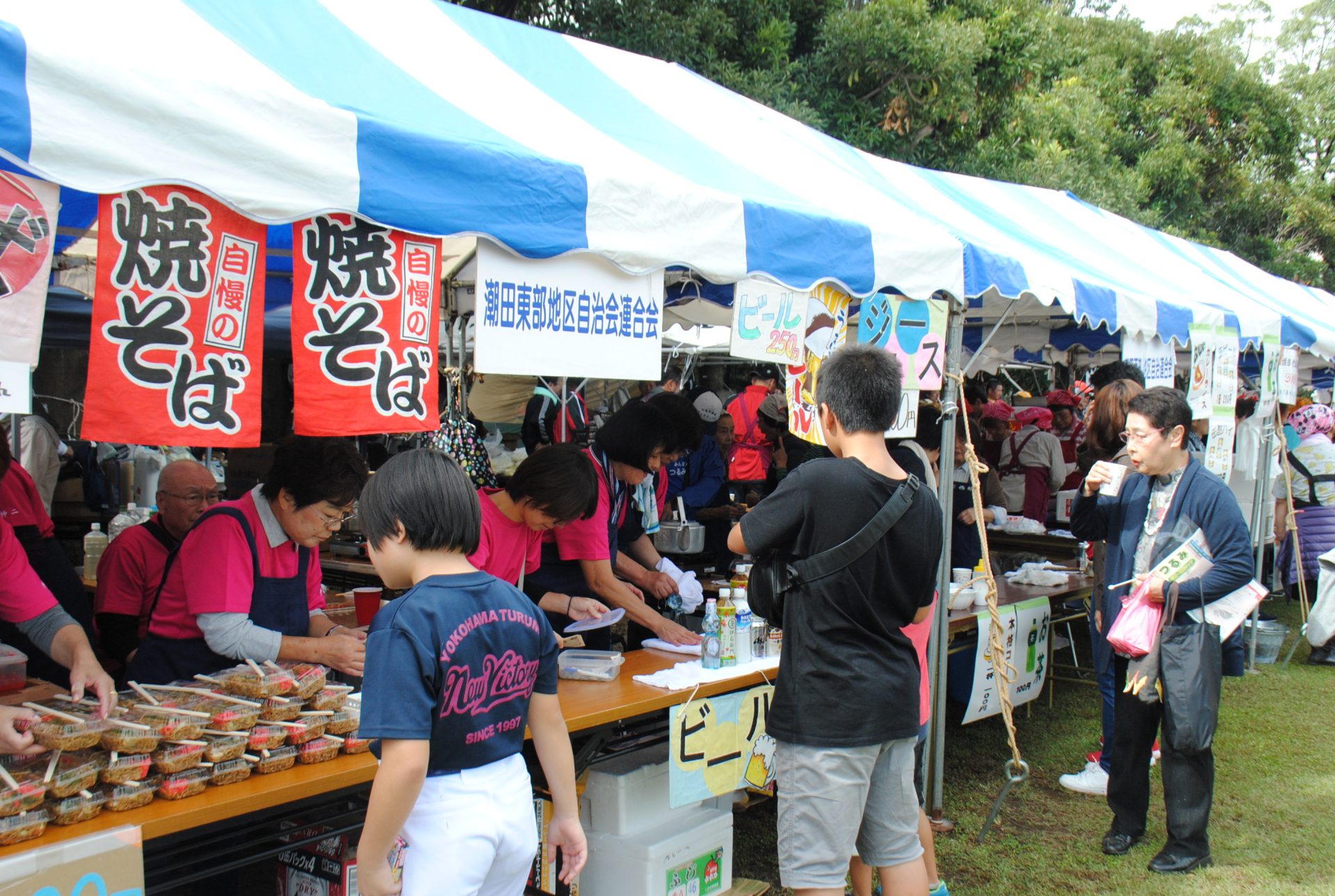 - 自治会や地域団体などの飲食などのブースが並ぶ(写真は2019年開催の様子)
