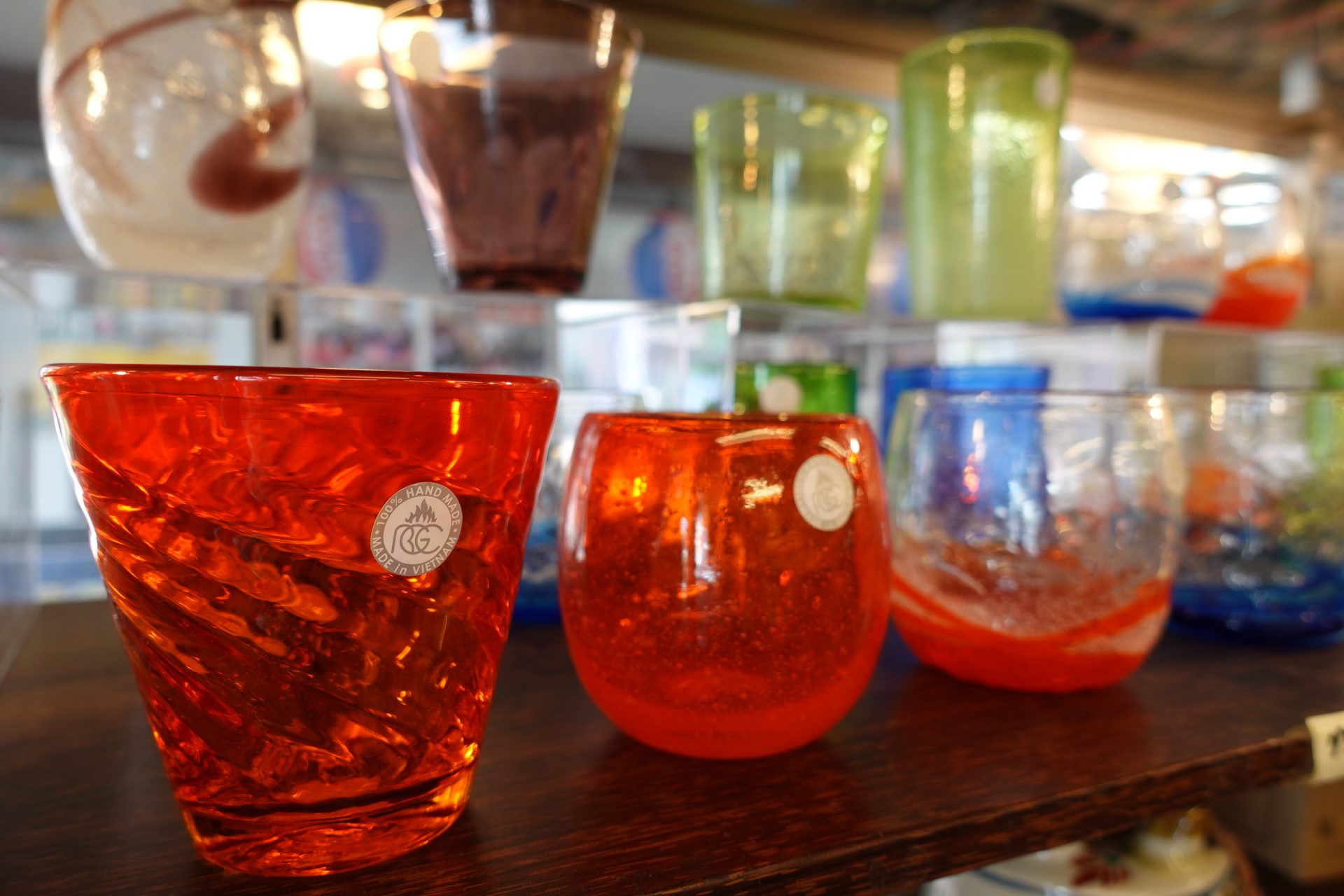 - 赤や青など鮮やかさが特徴の琉球ガラス