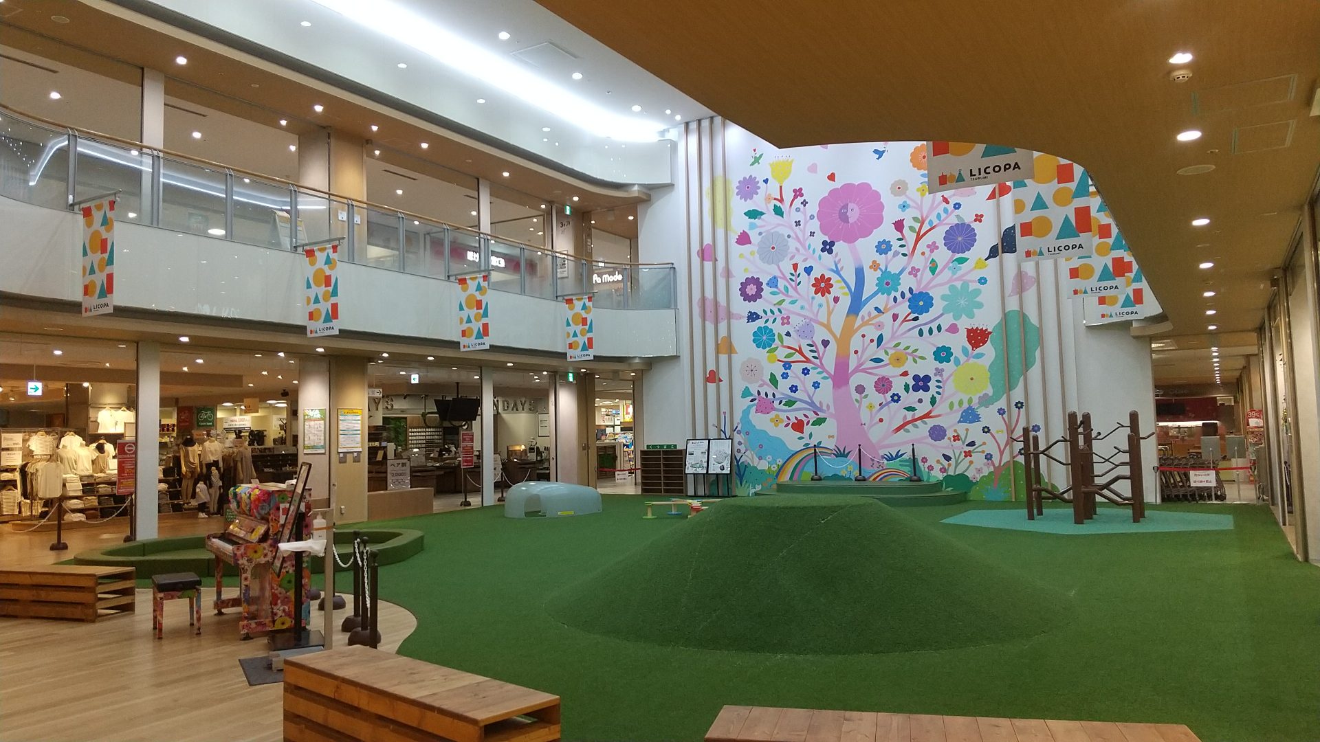 LICOPA鶴見の施設イチオシポイントは、吹き抜けのある店内中央の「PARK」。子ども向けの遊具や丘があり、毎日多くの子どもたちが楽しそうに過ごしている。