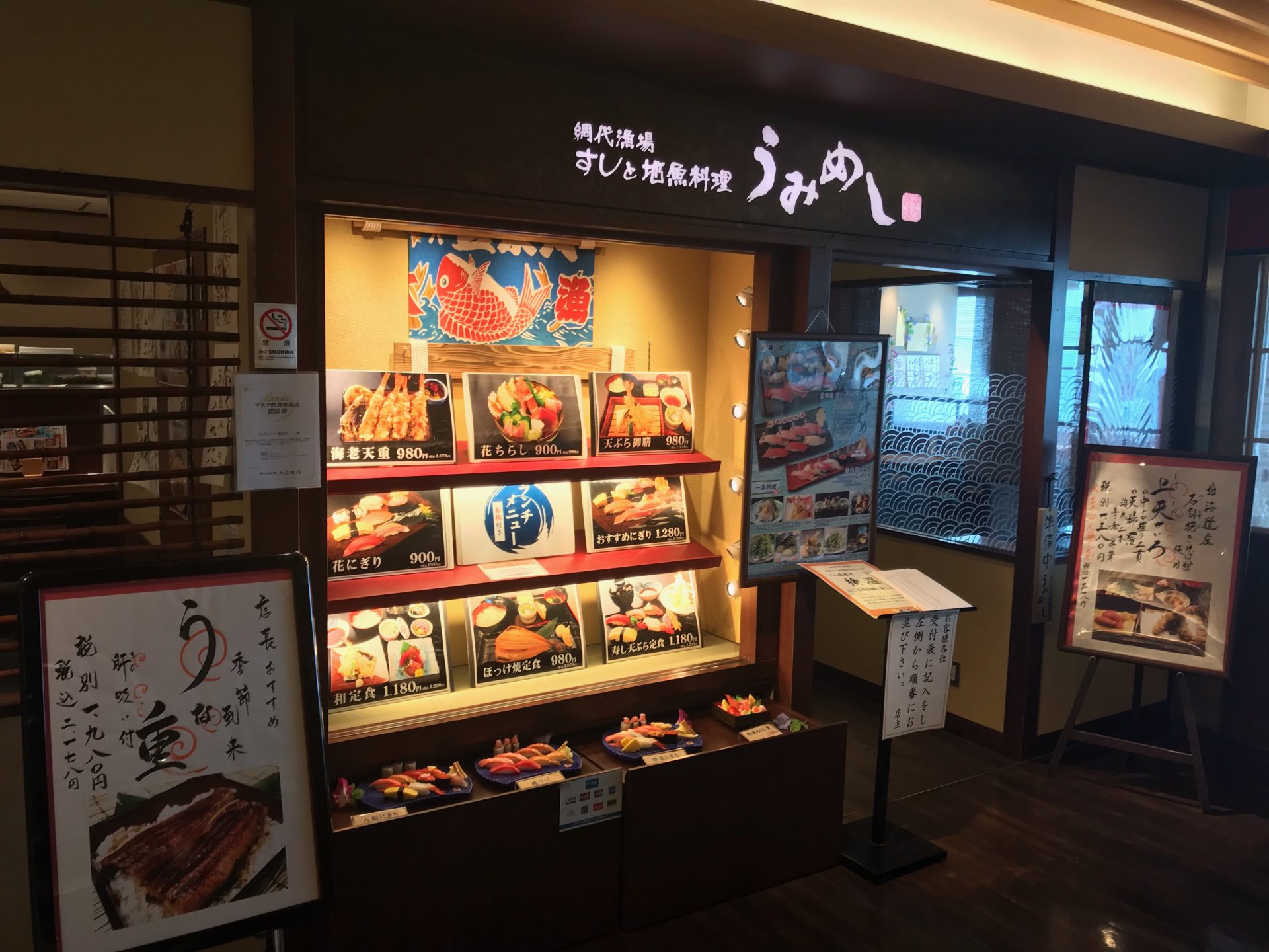 JR鶴見駅の駅ビル・シァル鶴見の6階にある「すしと地魚料理 うみめし」。すしを中心に気軽に和食を楽しめる店舗となっている。