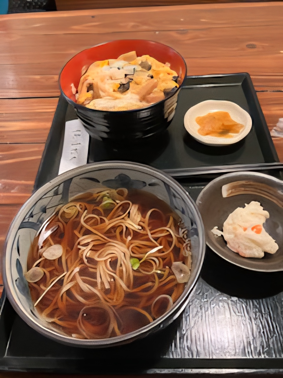 今回は、ランチ卵丼セットの温かいお蕎麦を頂きました。お蕎麦は、「そばかうどん、温麺か冷やし麺」の選択で選べます。このほかに、人気なのが、ランチ親子丼セットとイカ天丼セットのようです。もちろん、ランチのかつ丼セットも注文数が多いように感じました。今回は、ランチ卵丼セットの注文でしたが、次回はイカ天セットにするつもりです。