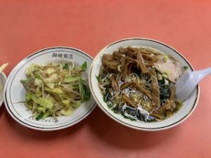 さて、この店の特徴ですが、とにかく、ラーメンスープが優しいというのが私の第一印象です。そして、野菜炒めやニラ玉炒めなどもよい味付けなのです。住宅地にあるような、町中華をはじめとする食べ物屋さんは、「毎日来ても飽きがこない」というところが多いようですが、この店もその範疇に入ると思います。ただ、鶴見駅周辺なら、混んでいたり休みだったりしたときに、別の店がありますから、心配はないのですが、このような店は、入れるかまた席が空いているか入店まで、ドキドキなものです。今回は、わかめラーメンに、メンマを注文して、個人的にわかめ・メンマラーメンを作りました。副菜には肉が抑え気味の野菜炒めを追加しました。わかめ・メンマラーメンは自分としてはこの店の定番です。優しさの極値であるスープがいい感じですし、野菜炒めのシャキシャキ感とその味付けが抜群でした。この店の焼きそばや味噌ラーメンあるいは餃子など挑戦したいものは数々ですが、いつもわかめラーメンを外せないのがまた悩みの種です。私には外せない町中華です。