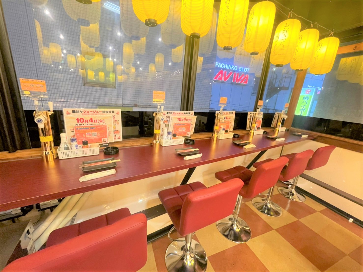 - 店内のカウンター席。座席はテーブルも合わせ全48席