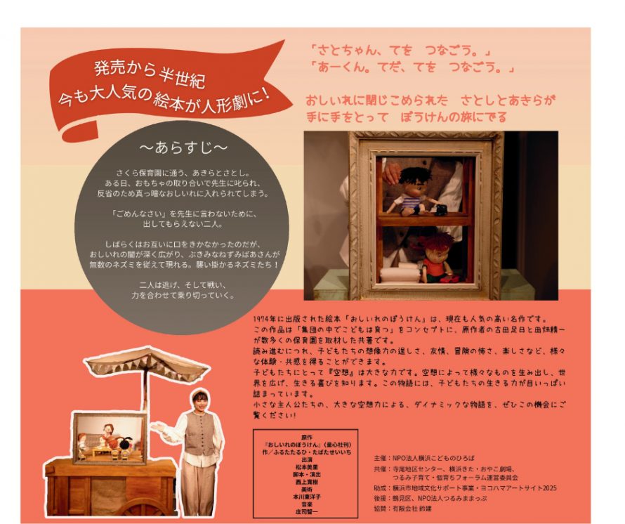 人形劇などを通し、地域住民らのつながりの場を作る「まちかど劇場プロジェクト」。NPO法人横浜こどものひろばと、てらお「福まち」協議会が共催する同プロジェクトによる2イベントが、寺尾地区センター=鶴見区馬場4-39-1=を会場に11月1日㈯と11月8日㈯に行われる。