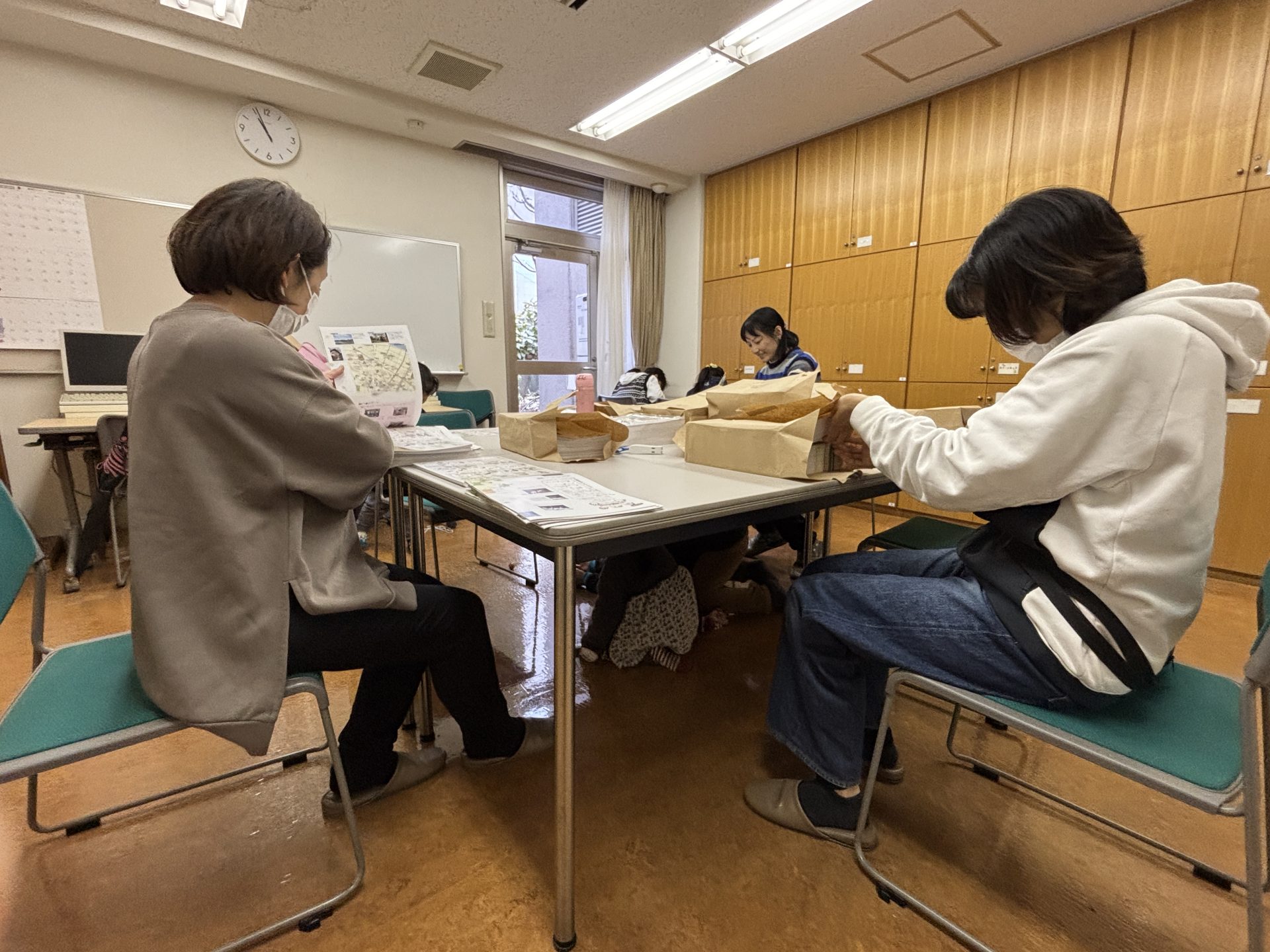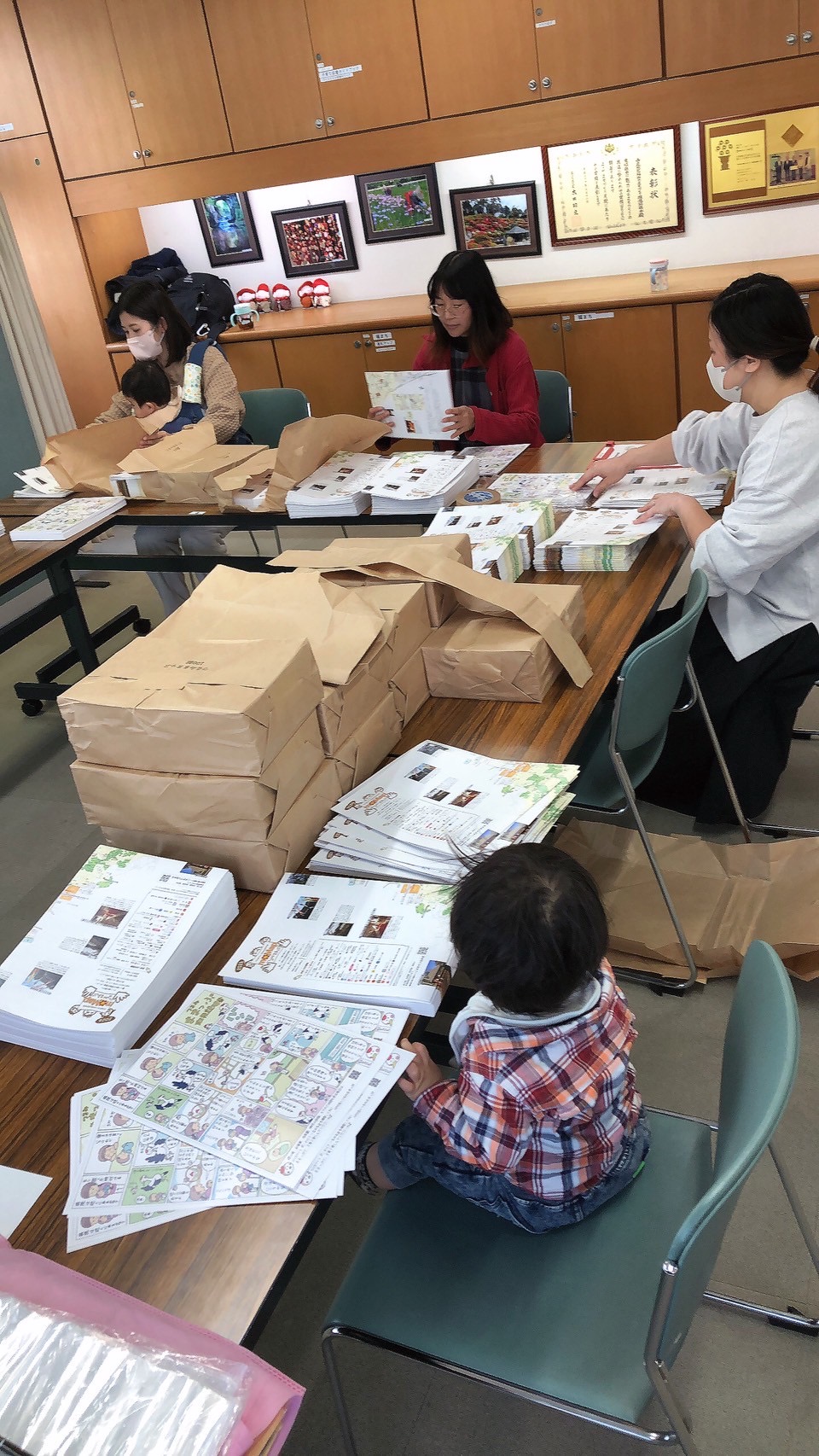その後、みんなで取扱説明書を挟み込みます。