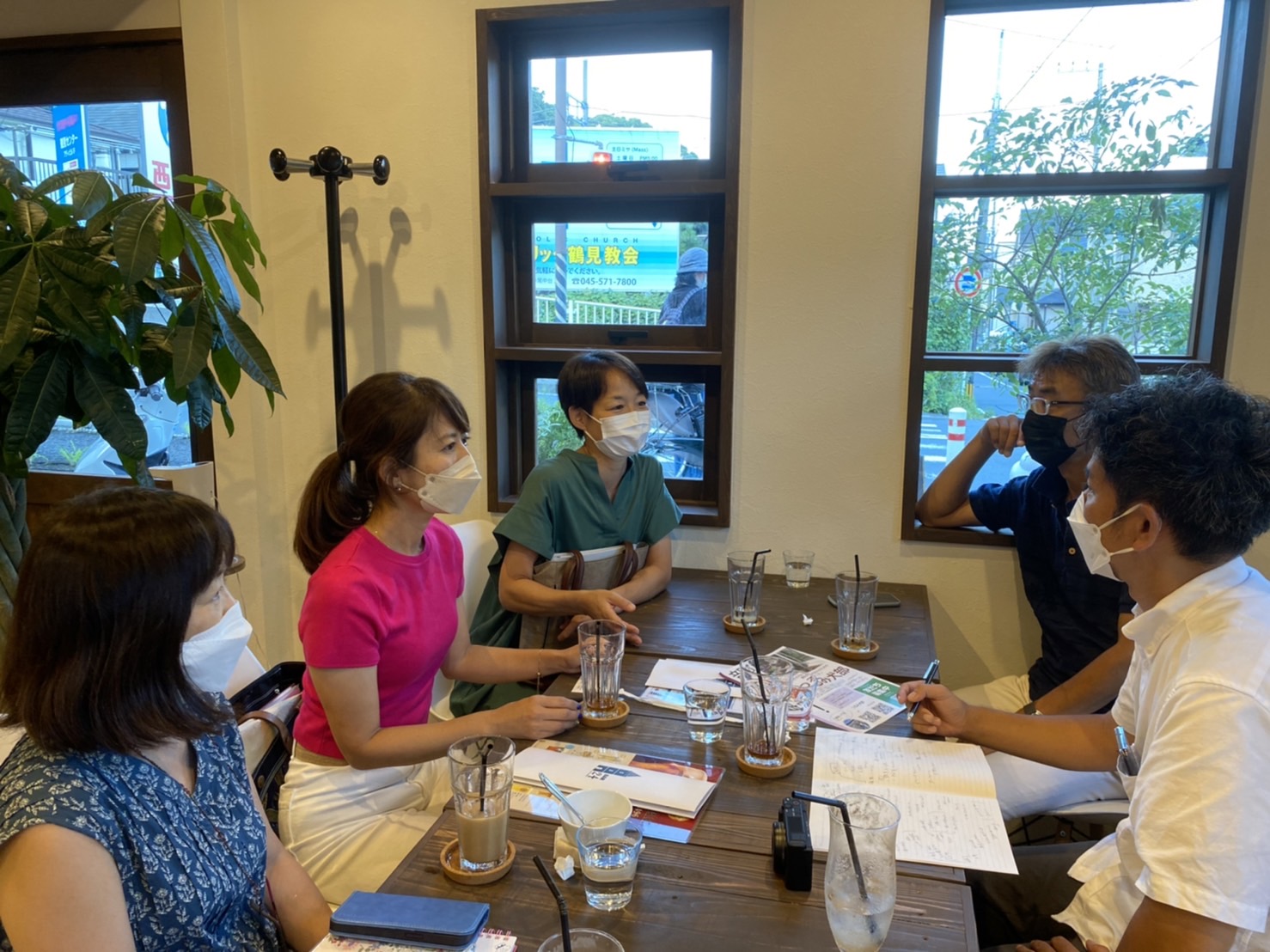 - 編集部の取材に応じる犬部の皆さん(右奥が茂手木代表)