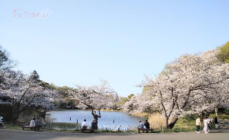 今では日本桜100選にも選ばれています。下ノ池と中ノ池の間の橋に石碑があります。その石碑は江戸時代の測量家が掘った石碑でその石碑には「いつまでも三ツ池の池が枯れませんように」という意味があります。