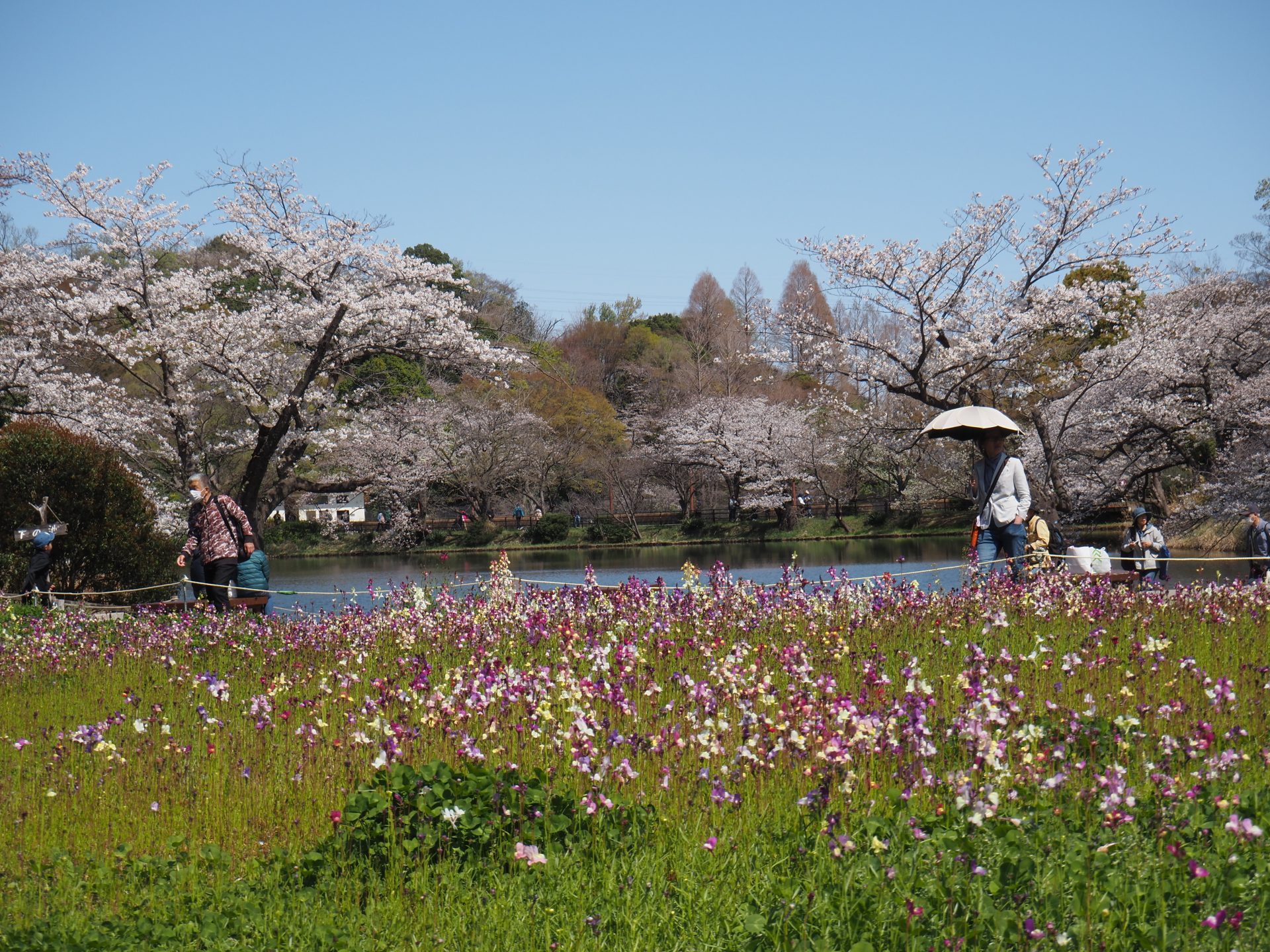 他の花とも楽しめる三ツ池の桜(写真は昨年)