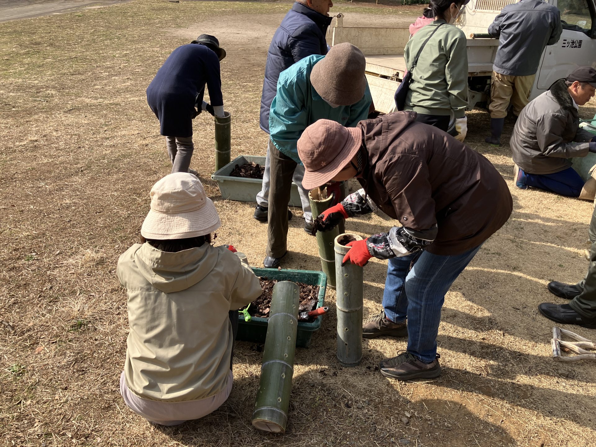 - 竹の中に入れた栄養が地面に溶け込み、竹は土にかえるという手法