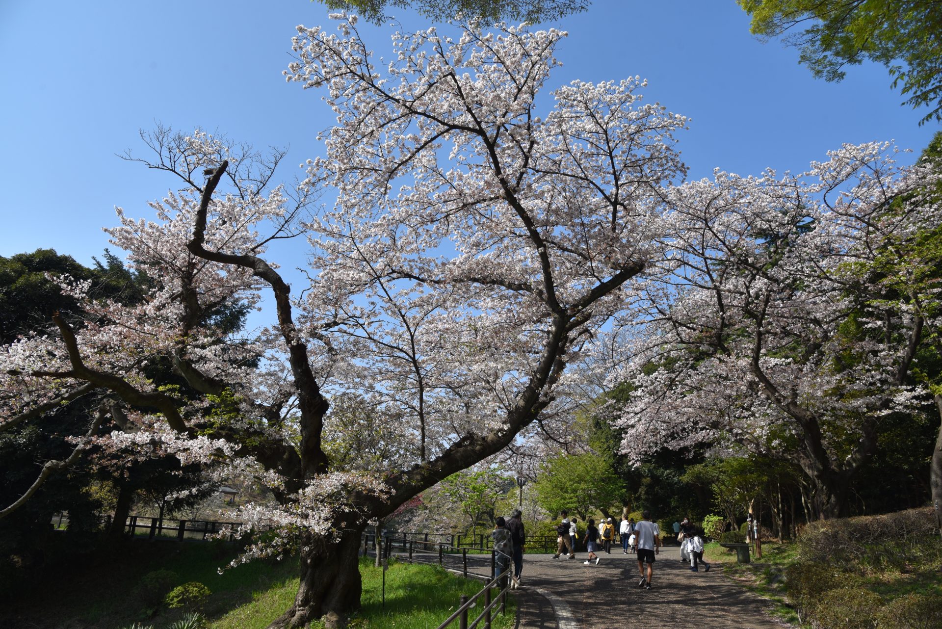さらに、パークセンター正面の山の上、冒険の森にある枝垂れ桜は、三ツ池の中でも1、2を争う巨木で、「ひっそりとした雰囲気で楽しめる個人的〝推し〟の一本」と藤田さん。